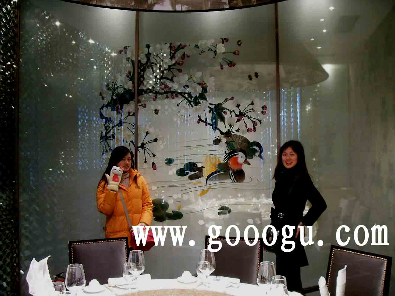 (一) 應用行業(yè)及人群 大型酒店、別墅裝修、單位大廳裝飾等 (二) 商業(yè)用途 大型酒店定做包廂雙面繡隔斷、別墅定做玄關雙面繡隔斷、單位大型壁畫裝飾等 (三) 選擇理由 代表中國傳統(tǒng)的特色文化,雙面繡隔斷透明中滲透著傳統(tǒng)中國傳統(tǒng)文化元素! (四) 應用案例 1. 蘇浙匯飯店為中國知名的高檔餐飲企業(yè),蘇浙匯蘇州園區(qū)店包廂裝飾隔斷選用嬌古蘇繡雙面繡,兩豪華包廂間用兩塊鋼化玻璃夾住雙面繡品做為隔斷,客人在享受美食的同時感受博大精深的中華傳統(tǒng)文化。