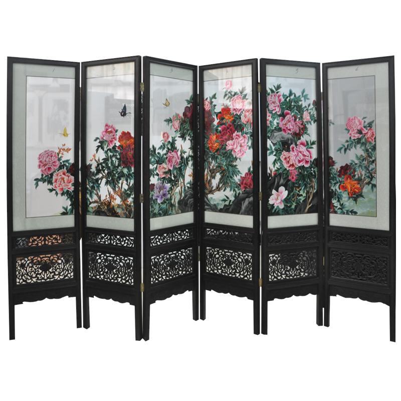 嬌古蘇繡雙面繡 牡丹圖折疊屏風 大廳家居玄關(guān)隔斷 純手工刺繡