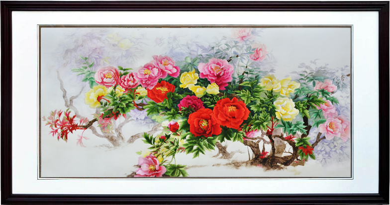 精品牡丹畫/中國特色禮品、傳統(tǒng)手工藝刺繡/婚慶禮品、喬遷禮品