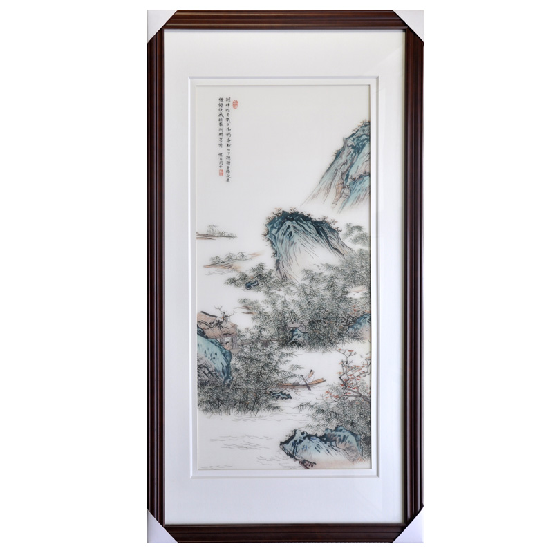 蘇繡山水壁畫豎款山水作品新中式裝飾壁畫
