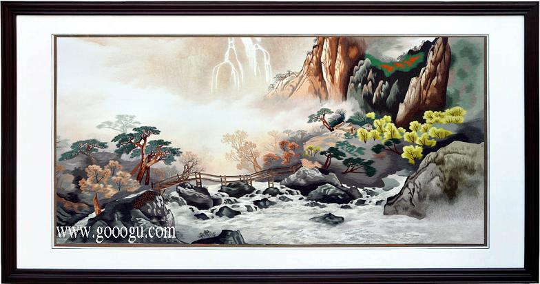 蘇繡裝飾畫/深秋行旅圖、山水裝飾畫/大型手工刺繡畫
