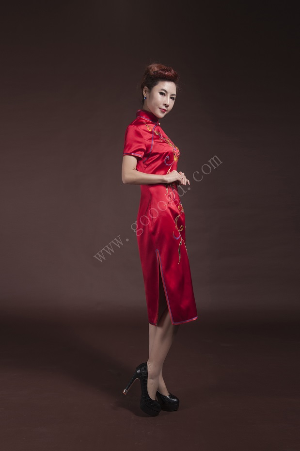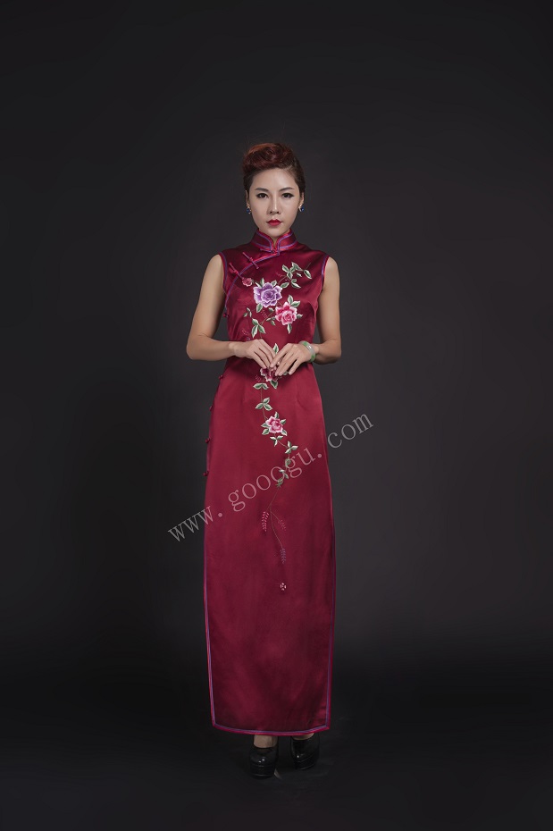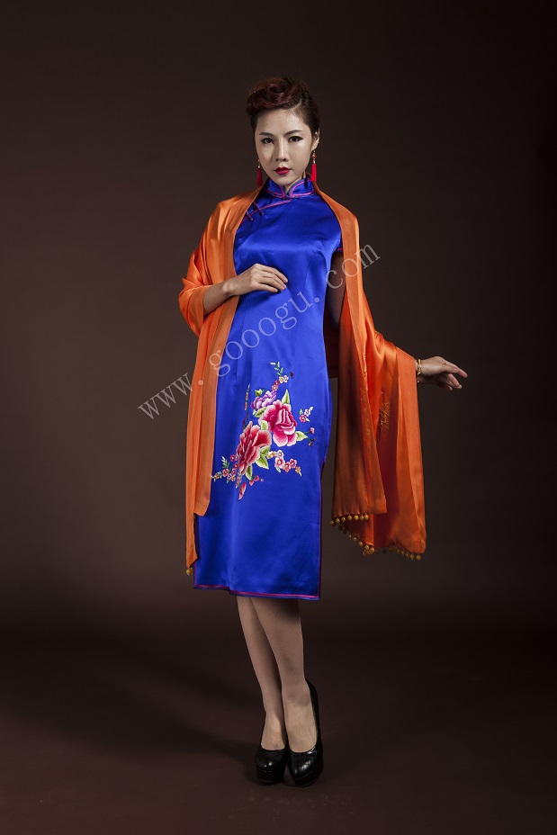 嬌古絲綢純手工刺繡禮服旗袍、流行服裝舞會(huì)聚會(huì)專(zhuān)用服飾