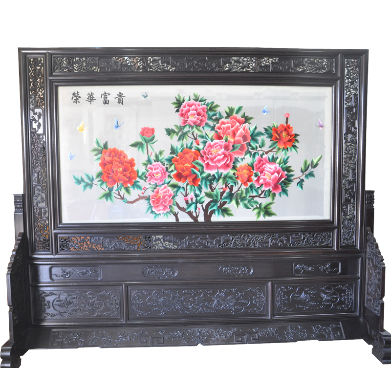 蘇繡屏風(fēng)榮華富貴 純手工制作 刺繡高端禮品 周年慶