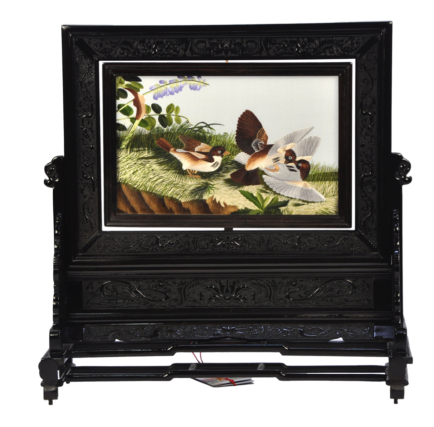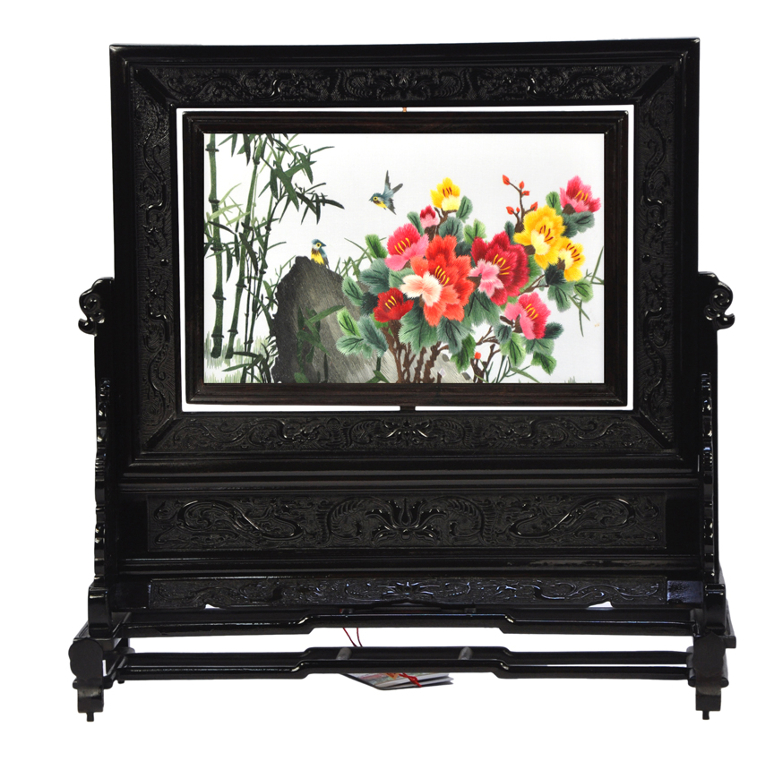 產(chǎn)品名稱:紫檀蘇州雙面繡 (作品代碼:SZ-7889) 產(chǎn)品規(guī)格:46X41CM(外框尺寸) 25X16CM(繡品尺寸) 產(chǎn)品工藝:蘇州繡娘手工刺繡。繡品圖案部分可360度旋轉(zhuǎn) 產(chǎn)品材質(zhì):真絲面料+桑蠶絲線+玻璃+紫光檀木架 產(chǎn)品包裝:錦盒禮品裝 嬌古出廠價(jià):2800元/件 市場(chǎng)零售參考價(jià):6000元左右 最小起訂量:1件----廠家直銷,可當(dāng)天發(fā)貨(可混配圖案) 產(chǎn)品描述:紫光檀蘇州雙面繡為蘇州繡娘手工刺繡而成,木框?yàn)槟壳爸袊?guó)蘇州雙面繡材質(zhì)紫光檀,整體框架花紋雕刻細(xì)膩。圖案有花卉(牡丹,梅花,荷花,蘭花等),花鳥,動(dòng)物(熊貓,老虎,魚等),山水,風(fēng)景,名家字畫等。圖案多達(dá)一百多種,有古色古香的,有現(xiàn)代氣息的,高貴典雅,是贈(zèng)送客人的特色禮品之一。 系列推薦