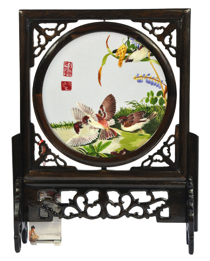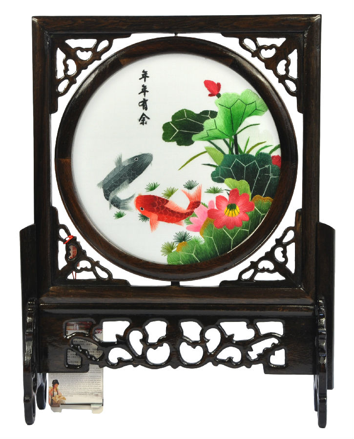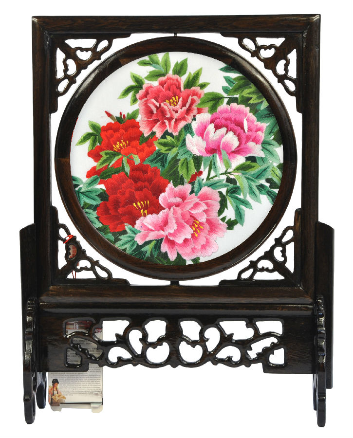 產(chǎn)品名稱:20CM內(nèi)圓外方蘇繡臺屏(雙面繡) (作品代碼:SN-406) 產(chǎn)品規(guī)格:圖案尺寸圓直徑20CM 外框整體尺寸寬32CM,高40CM 產(chǎn)品工藝:蘇州繡娘手工刺繡。繡品可360度旋轉(zhuǎn) 產(chǎn)品材質(zhì):真絲面料+桑蠶絲線+玻璃+木架 產(chǎn)品包裝:錦盒禮品裝 嬌古出廠價:420元/件 最小起訂量:20件----廠家直銷,可當(dāng)天發(fā)貨(可混配圖案) 產(chǎn)品描述:20CM內(nèi)圓外方款蘇州雙面繡為蘇州繡娘純手工刺繡而成,圖案有花卉(牡丹,梅花,荷花,蘭花等),花鳥,動物(熊貓,老虎,魚等),山水,風(fēng)景等。圖案多達一百多種,有古色古香的,有現(xiàn)代氣息的,高貴典雅,是贈送客人的重要禮品之一。 注:此款因其性價高被眾多企事業(yè)單位及禮品公司大量采購,可用于商務(wù)禮品,會議禮品,企事業(yè)紀念禮品等(可根據(jù)需要加企業(yè)LOGO等)。 此款曾為日本索尼,美國新美亞等知名企業(yè)定做商