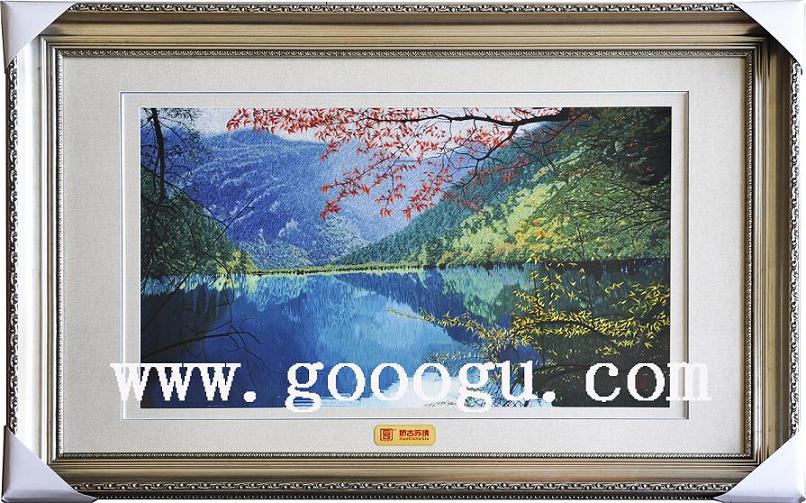 【蘇繡名稱】:九寨溝風(fēng)景蘇繡畫 (作品代碼-D1018) 【蘇繡規(guī)格】:50X80CM(圖案尺寸) 80X115CM(外框尺寸) 【蘇繡工藝】:嬌古蘇繡工藝師手工刺繡 【蘇繡材質(zhì)】:真絲面料、藝術(shù)框、桑蠶絲線、玻璃 【蘇繡包裝】:傳統(tǒng)蘇繡禮品裝 【嬌古蘇繡出廠參考價(jià)】:歡迎來(lái)電咨詢(含運(yùn)費(fèi)) 【發(fā)貨方式】:由我司安排發(fā)往客人指定地點(diǎn) 【蘇繡作品描述】: 九寨溝黃龍位于四川省阿壩藏族羌族自治區(qū),是我國(guó)公布的第一批國(guó)家級(jí)重點(diǎn)風(fēng)景名勝區(qū)。1990年,九寨溝被列為“中國(guó)旅游勝地四十佳”之首,1991年被列入聯(lián)合國(guó)《世界風(fēng)景名錄》,1992年12月又由聯(lián)合國(guó)教科文組織批準(zhǔn),正式列入《世界自然遺產(chǎn)名錄》,從此登上世界旅游的寶座,成為中外游客向往的神奇的“夢(mèng)幻世界”。 因溝內(nèi)分布著9個(gè)藏族村寨而得名,海拔2000~3000米,屬高山深谷碳酸鹽堰塞地貌,以翠海(高山湖泊)、疊海、彩林、雪山、藏情“五絕”馳名中外,被譽(yù)為“夢(mèng)仙境”和“童話世界”。主景長(zhǎng)沙有六公里,面積6萬(wàn)多公頃,有長(zhǎng)海、劍巖、諾日朗、樹正、扎如、黑海六大景觀,呈“Y”字形分布,以水景最為奇麗,泉、瀑、河、灘將108個(gè)海子連綴一體,碧藍(lán)澄澈,千顏萬(wàn)色,多姿多彩,“水在樹間流,樹在水中長(zhǎng)”,有“黃山歸來(lái)不看岳,九寨歸來(lái)不看水”和“世界水景之王”之稱。 九寨溝特別美麗,國(guó)家中唯一獲得“世界自然遺產(chǎn)”的“童話世界”。九寨溝的山水形成于第四世紀(jì)古冰川世代,海拔在2000—3200之間,現(xiàn)保存著大量第四紀(jì)古冰川遺跡。九寨溝的地下水富含大量的碳酸鈣質(zhì),湖底、湖堤、湖畔水邊均可見(jiàn)乳白色碳酸鈣形成的結(jié)晶體,來(lái)自雪山、森林。 九寨溝的活水泉又異常潔凈,加之梯形狀的湖泊層層過(guò)濾,其水色愈加透明,能見(jiàn)度高達(dá)20米。翠海、疊瀑、彩林、雪峰、藏情,被譽(yù)為九寨溝“五絕”。水乳交融,美不勝收。