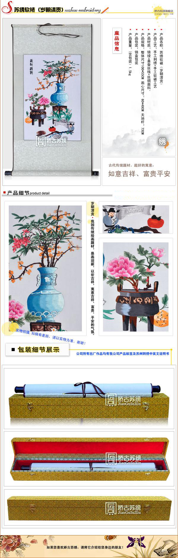 【嬌古蘇繡】蘇繡裝飾軟裱、書房裝飾畫、歲朝清貢圖