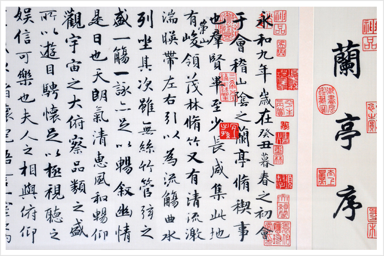 【品 牌】:嬌古 (作品代碼 D-1042) 【品 名】:蘭亭序裝飾畫(huà)(手工蘇繡) 【品 質(zhì)】:2-4絲刺繡 (蘇繡小知識(shí):1根蘇繡絲線可分為16絲,中檔刺繡皆為10絲所繡,中高檔刺繡皆為6-8絲,高檔刺繡皆為4-6絲,精品刺繡皆為1-4絲) 【尺 寸】:畫(huà)心尺寸44*117cm 整體尺寸60*147cm 【產(chǎn)品工藝】:手工刺繡+真絲底料 【絲線材質(zhì)】:蠶絲線 【用 途】:家居裝飾及政府禮品、外賓禮品、生日禮物、賀壽禮品、領(lǐng)導(dǎo)升遷、出國(guó)禮品等等。 【出廠價(jià)格】:12000元 【作品介紹】:東晉穆帝(司馬聃)永和九年(公元353年)三月初三日,王羲之和當(dāng)時(shí)名士孫綽、謝安和釋支遁等四十一人,為禊事活動(dòng),在蘭亭宴集。與會(huì)的人士都有詩(shī)作,事后把這些詩(shī)篇匯編成集,《蘭亭集序》就是王羲之為這個(gè)詩(shī)集所寫(xiě)的序言。序,文體名,是對(duì)書(shū)籍和文章舉其綱要、論其大旨的一種文字,相當(dāng)于引言。 《蘭亭集序》文字燦爛,字字珠璣,是一篇膾炙人口的優(yōu)美散文,它打破成規(guī),自辟?gòu)锦?,不落窠臼,雋妙雅逸,不論繪景抒情,還是評(píng)史述志,都令人耳目一新。雖然前后心態(tài)矛盾,但總體看,還是積極向上的,特別是在當(dāng)時(shí)談玄成風(fēng)的東晉時(shí)代氣氛中,提出一死生為虛誕,齊彭殤為妄作,尤為可貴?!短m亭集序[1]》的更大成就在于它的書(shū)法藝術(shù)。通篇?dú)庀⒌涂侦`、瀟灑自然;用筆遒媚飄逸;手法既平和又奇崛,大小參差 ,既有精心安排藝術(shù)匠心,又沒(méi)有做作雕琢的痕跡,自然天成。其中,凡是相同的字, 寫(xiě)法各不相同,各有變化,特別是字,達(dá)到了藝術(shù)上多樣與統(tǒng)一的效果?!短m亭集序》是王羲之書(shū)法藝術(shù)的代表作,是中國(guó)書(shū)法藝術(shù) 史上的一座高峰,它滋養(yǎng)了一代又一代書(shū)法家。 在結(jié)構(gòu)和章法上以情感為線索,敘中有情,以情說(shuō)理。第一段在清麗的境界中,著重寫(xiě)樂(lè)字,由樂(lè)而轉(zhuǎn)入沉思,引出第二段的痛字,在經(jīng)過(guò)一番痛苦的思考后,不覺(jué)感到無(wú)限的悲哀,最后以一悲字作結(jié)。情感色彩迥乎不同,前后過(guò)渡卻妥帖自然。 細(xì)節(jié)圖