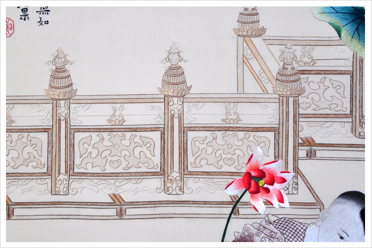 (蘇繡小知識:1根蘇繡絲線可分為16絲,中檔刺繡皆為10絲所繡,中高檔刺繡皆為6-8絲,高檔刺繡皆為4-6絲,精品刺繡皆為1-4絲)