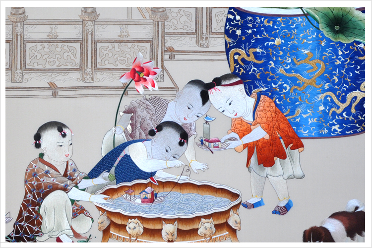 【品    名】:傳宋人畫子孫和合圖裝飾畫(手工蘇繡)
