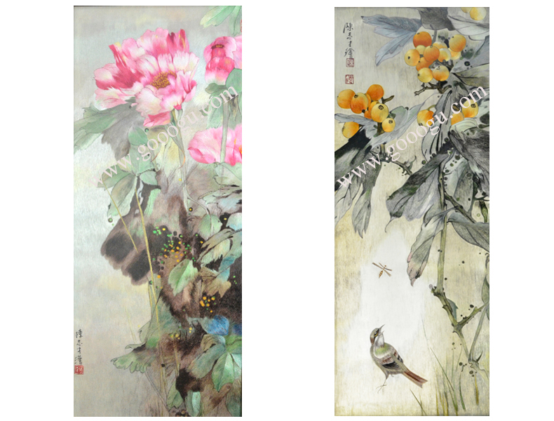 【產(chǎn)品名稱】:花鳥折疊屏風(fēng)---陳志才花鳥(雙面繡) (作品代碼:ZP-1002) 【產(chǎn)品規(guī)格】:圖案尺寸寬40CM每扇,高100CM每扇 外框整體尺寸寬65cm每扇,高205cm每扇 【產(chǎn)品工藝】:手工刺繡 【產(chǎn)品材質(zhì)】:真絲面料+純天然雞翅木框+桑蠶絲線+玻璃 【產(chǎn)品包裝】:木箱包裝,用海綿包扎,確保運(yùn)輸安全 【出廠價(jià)】:54800元 【產(chǎn)品運(yùn)輸】:我司負(fù)責(zé)發(fā)往客戶指定地點(diǎn),蘇州附近城市可送貨上門! 【產(chǎn)品說明】:此款純天然雙面繡折疊屏風(fēng),采用進(jìn)口的雞翅木為框架材料,做工精細(xì),整幅作品是由蘇州工藝師耗時(shí)數(shù)月手工刺繡而成,刺繡圖案繡工精細(xì),顏色搭配均勻,整體給人舒適,愜意之感,木雕細(xì)膩精美,是蘇繡屏風(fēng)中的經(jīng)典作品。是貴賓接待室或大廳的重要裝飾品之一!歡迎親臨嬌古蘇繡展示廳觀看實(shí)物! 【作品欣賞】 .jpg) 陳志才花鳥特寫 .jpg)