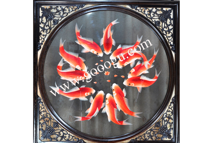 【產(chǎn)品名稱】:蘇繡蘇繡屏風---十二紅魚(雙面繡) (作品代碼:P-1066) 【產(chǎn)品規(guī)格】:圖案尺寸直徑為100cm的圓 外框整體尺寸寬175cm,高215cm 【產(chǎn)品工藝】:手工刺繡 【產(chǎn)品材質(zhì)】:真絲面料+雞翅木框+桑蠶絲線+玻璃 【產(chǎn)品包裝】:木箱包裝,用海綿包扎,確保運輸安全 【出廠價】:26000元 【產(chǎn)品運輸】:我司負責發(fā)往客戶指定地點,蘇州附近城市可送貨上門! 【產(chǎn)品說明】:此款雙面繡屏風,是由蘇州工藝師耗時數(shù)個月精心手工刺繡而成,刺繡圖案以中國傳統(tǒng)的魚為題材繡工精細,顏色搭配均勻過渡自然,整體給人舒適,愜意之感,屏風的框架選用進口的雞翅木為料,是蘇繡屏風中的經(jīng)典作品。是企事業(yè)大堂或大廳的重要裝飾品之一!歡迎親臨嬌古蘇繡展示廳觀看實物! 【作品欣賞】 .jpg)