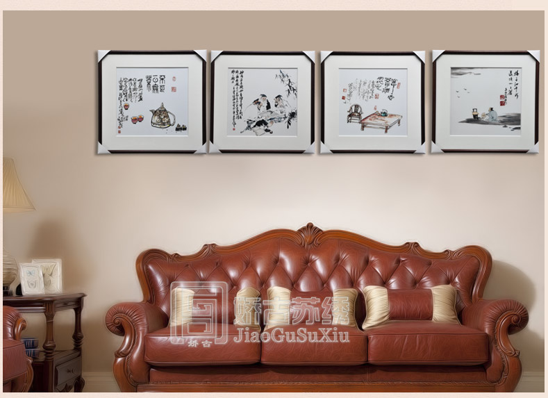 【品 牌】:嬌古 (作品代碼 D-1068) 【品 名】:中國元素裝飾畫(手工蘇繡) 【品 質(zhì)】:4-6絲刺繡 (蘇繡小知識:1根蘇繡絲線可分為16絲,中檔刺繡皆為10絲所繡,中高檔刺繡皆為6-8絲,高檔刺繡皆為4-6絲,精品刺繡皆為1-4絲) 【尺 寸】:畫心尺寸50*50cm 整體尺寸75*75cm 【產(chǎn)品工藝】:手工刺繡+真絲底料 【絲線材質(zhì)】:蠶絲線 【用 途】:政府禮品、個人收藏、外賓禮品、生日禮物、賀壽禮品、領(lǐng)導(dǎo)升遷、出國禮品等等。 【出廠價格】:3000元/幅