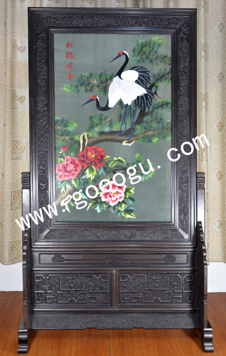 蘇繡玄關(guān)屏風(fēng) 松鶴延年 手工刺繡 雞翅木 祝壽禮品 送長(zhǎng)者