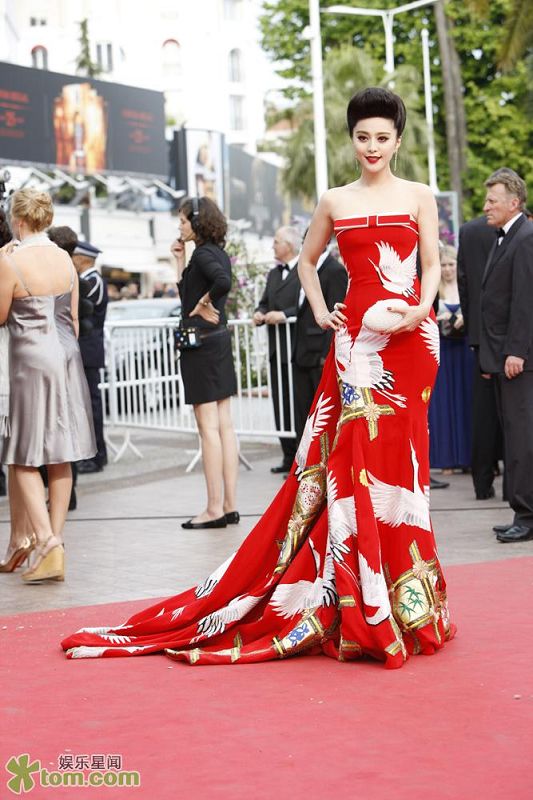 北京時(shí)間511日深夜,第64屆戛納國(guó)際電影節(jié)隆重開幕。今年的戛納紅毯明星云集,安東尼奧·班德拉斯、庫(kù)斯圖里卡、昆汀·塔倫蒂諾、費(fèi)·唐諾薇、瑞切爾·麥克亞當(dāng)斯、烏瑪·瑟曼等明星讓紅毯星光熠熠。中國(guó)明星出現(xiàn)的頻率也頗高。除了評(píng)委施南生和杜琪峰外,本屆戛納出現(xiàn)在開幕式紅毯上的中國(guó)女明星共有三位:鞏俐、范冰冰、袁莉。按照國(guó)際影響力大小,原本該是鞏俐排第一,但意外的是,今年戛納官方直播時(shí),卻選擇了把最多的鏡頭給予范冰冰。范冰冰當(dāng)天穿了一身紅色的仙鶴裝。仙鶴裝以中國(guó)紅為底色,上繡九只形態(tài)各異的仙鶴,中間還點(diǎn)綴著梅蘭竹菊。據(jù)范冰冰的宣傳總監(jiān)楊小姐介紹,選擇這件衣服是因?yàn)?span lang="EN-US">“海為龍世界,云是鶴家鄉(xiāng),這是繼去年的龍袍后,范冰冰再次選擇中國(guó)元素禮服來(lái)展現(xiàn)東方美。記者還了解到,其實(shí)除了這件仙鶴裝,范冰冰原本還有一套西式晚裝供選擇。在中規(guī)中矩的西式晚裝和中國(guó)風(fēng)情的仙鶴裝中,范冰冰一度擔(dān)心這套仙鶴裝過(guò)于夸張,但在最后決斷時(shí),她還是憑本能選擇了夸張的這套。