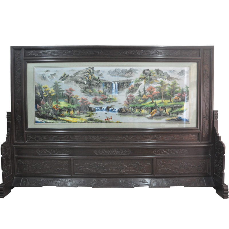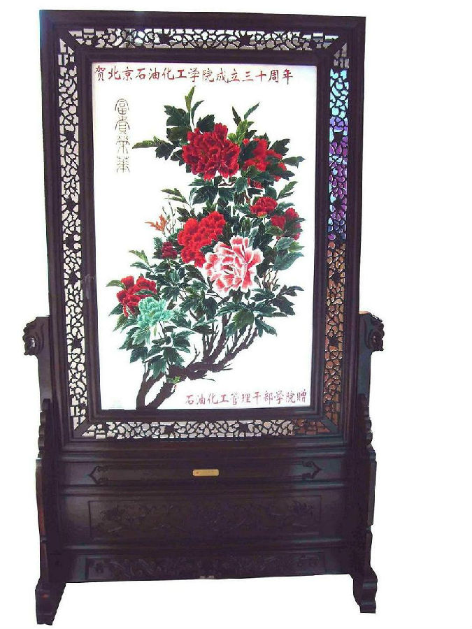 開業(yè)對于任何人來說都象征著事業(yè)新的起點,對于未來都充滿了希望,也因為如此,人們用各種各樣的方式來慶祝,來熱鬧,所以,開業(yè)送禮就是要送希望,送財源、送熱鬧!但開業(yè)并不是新鮮事物,自古就有,而且具有一定的形式規(guī)范,所以決定開業(yè)送禮送什么一定要新穎,耳目一新,蘇繡屏風(fēng)一直備受大家青睞,雞翅木紅木框架器宇軒昂,蘇繡色彩艷麗,針法精美絕倫。  【出廠價】:82000元 【產(chǎn)品名稱】:長白勝景(雙面繡) 【產(chǎn)品規(guī)格】:圖案尺寸寬度300cm,高度120cm 外框整體尺寸寬372cm,高265cm 【產(chǎn)品工藝】:手工刺繡 【產(chǎn)品材質(zhì)】:真絲面料+雞翅木+桑蠶絲線+玻璃