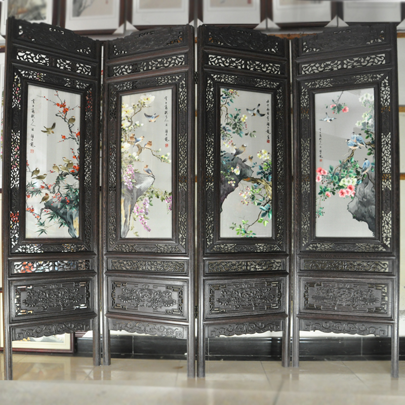 【出廠價】:22000元 【產(chǎn)品名稱】:四扇花鳥(雙面繡) 【產(chǎn)品規(guī)格】:圖案尺寸每扇寬度875px,高度2250px 外框整體尺寸寬1500px,高5125px 【產(chǎn)品工藝】:手工刺繡 【產(chǎn)品材質(zhì)】:真絲面料+雞翅木+桑蠶絲線+玻璃