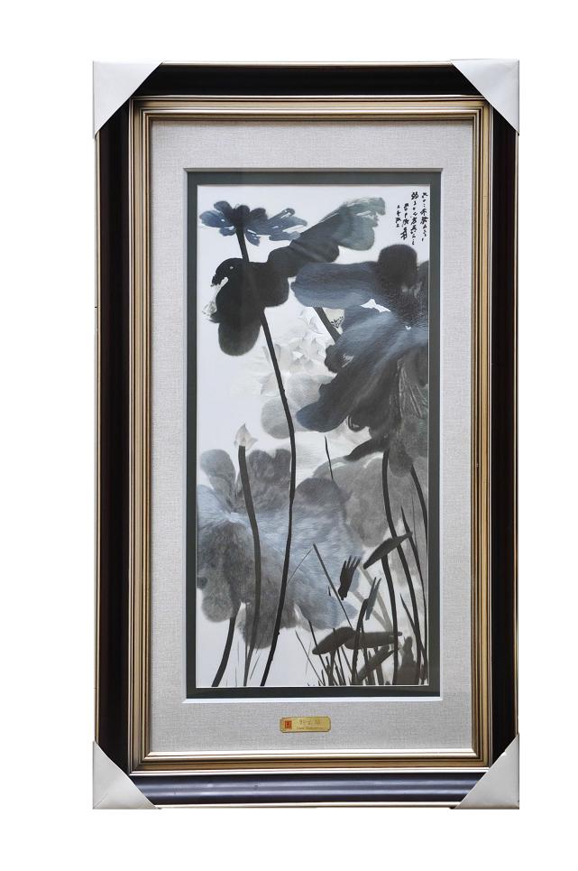 【嬌古蘇繡】蘇繡荷花裝飾畫/刺繡水墨畫/裝飾壁畫