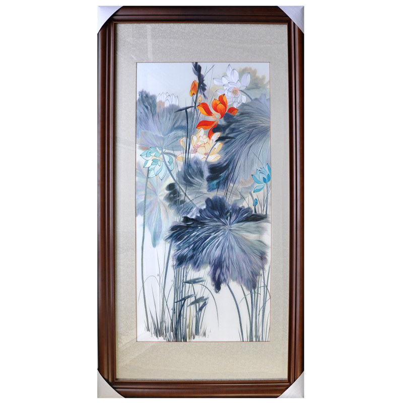 蘇繡張大千水墨荷花別墅裝飾壁畫(huà)豎版大型掛畫(huà)