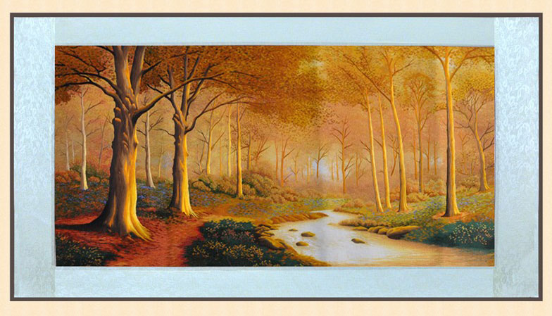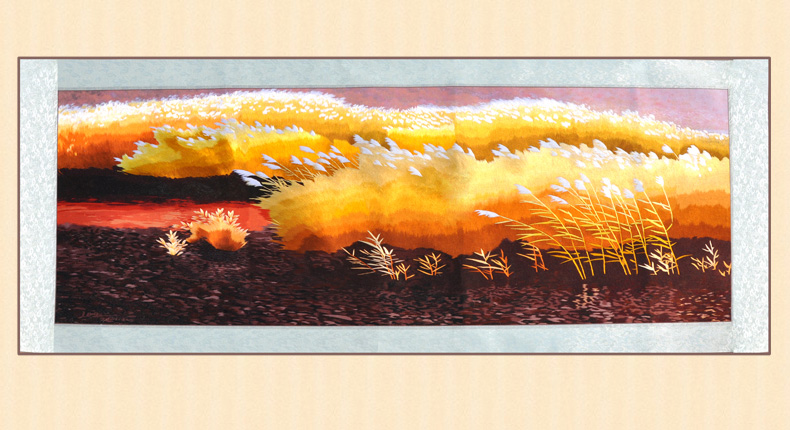 蘇繡風(fēng)景畫熱銷客廳壁畫金秋蘆葦