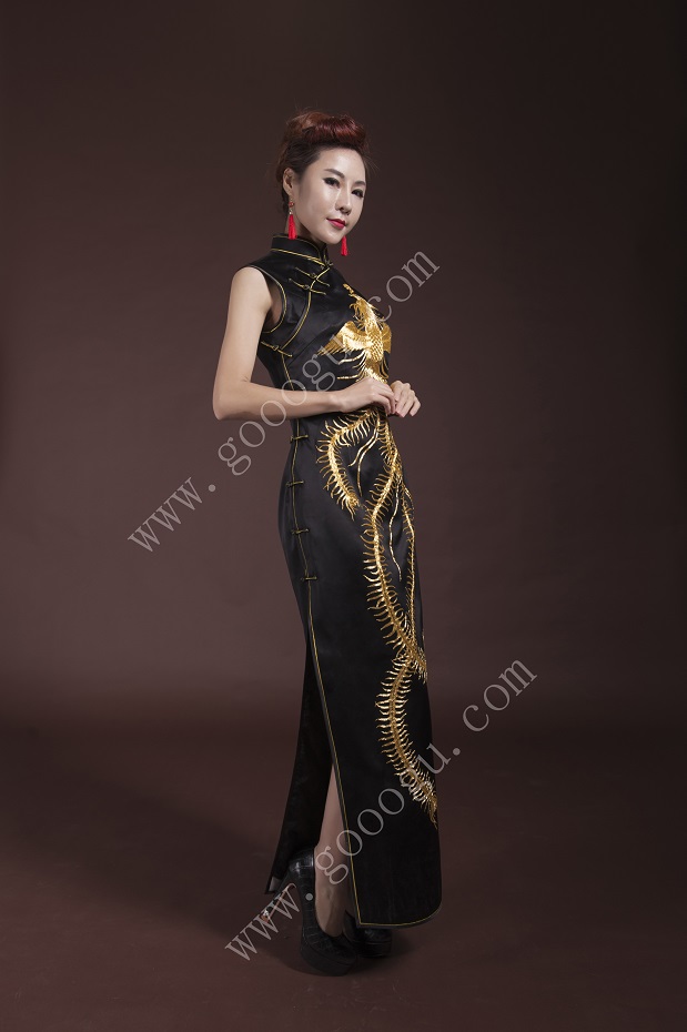 嬌古絲綢純手工刺繡禮服旗袍、流行服裝舞會(huì)聚會(huì)專(zhuān)用服飾