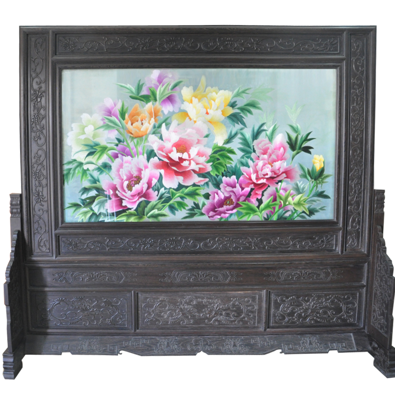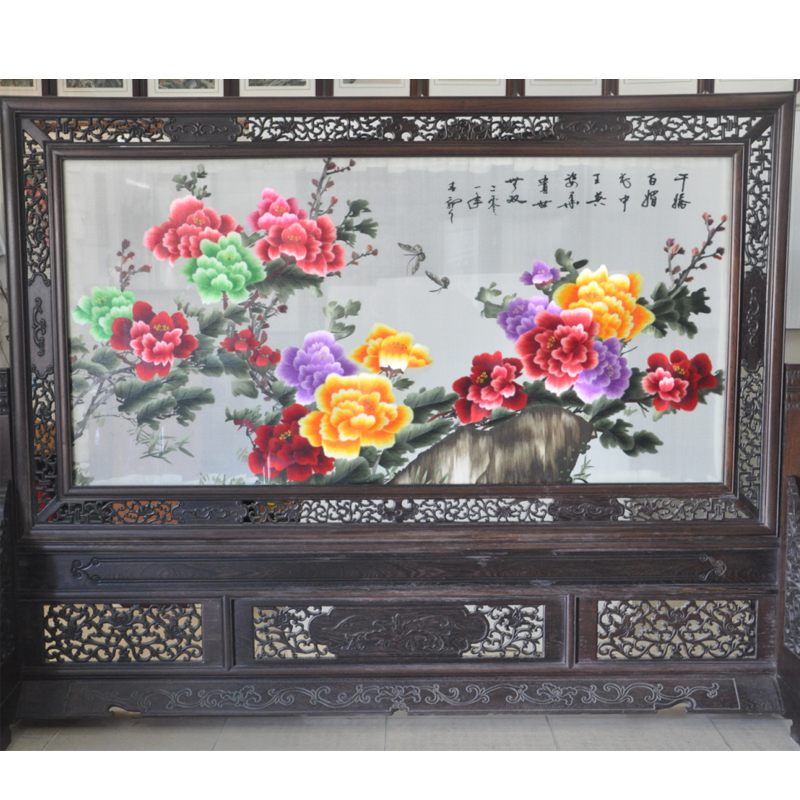 大型蘇繡屏風 牡丹花高檔刺繡品 開業(yè)周年慶典禮品 大堂屏風