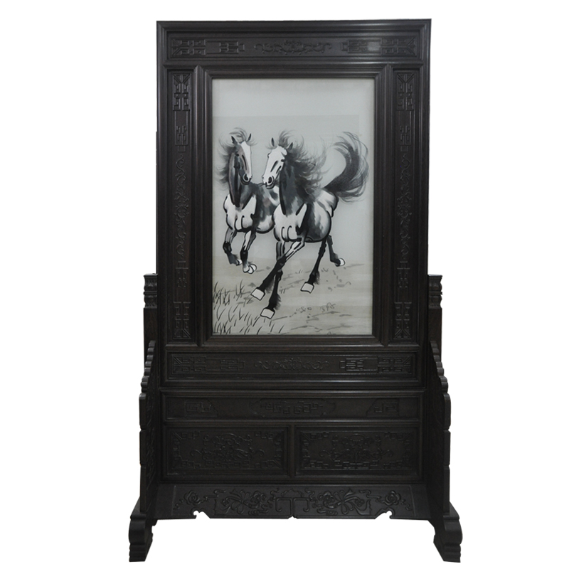 嬌古蘇繡玄關屏風 馬到成功刺繡圖 家居隔斷 中式刺繡傳統(tǒng)工藝品