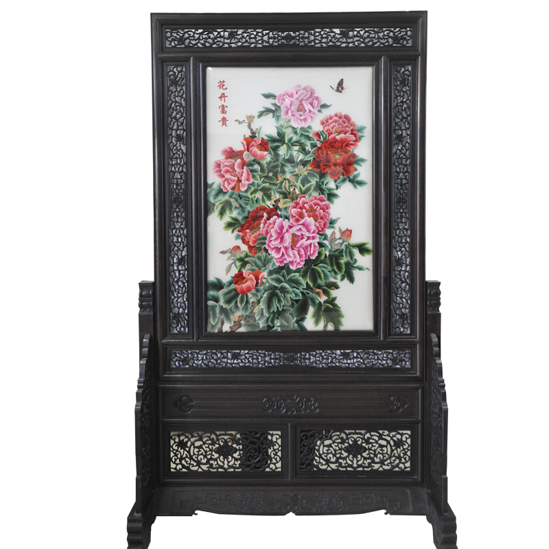 蘇繡木質屏風家用中國風刺繡牡丹圖手工酒店玄關蘇繡
