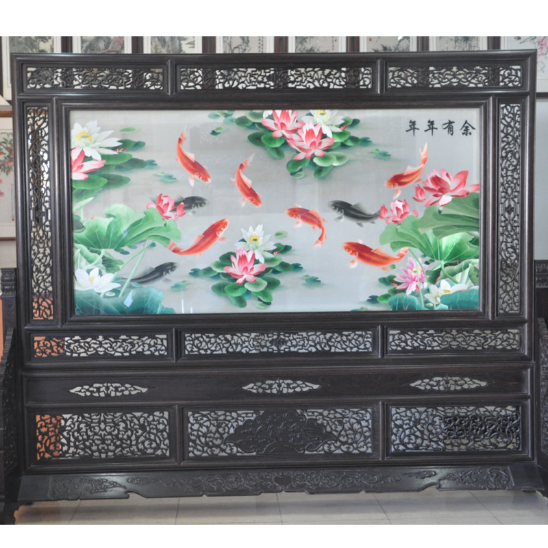蘇繡蓮花魚屏風(fēng) 純手工工藝品 大廳會(huì)所入口隔斷 紅魚精品刺繡
