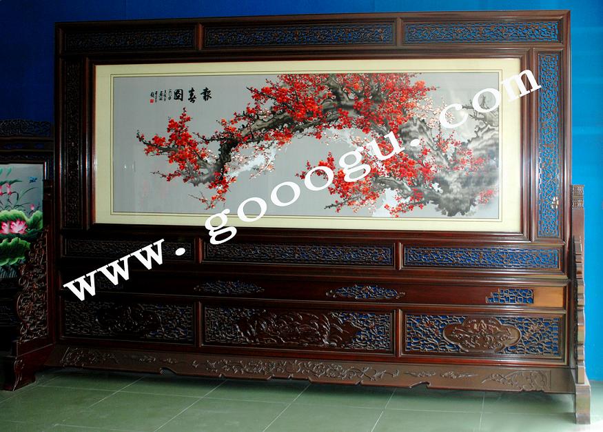 大型蘇繡報春圖|紅木屏風(fēng)|移動屏風(fēng)