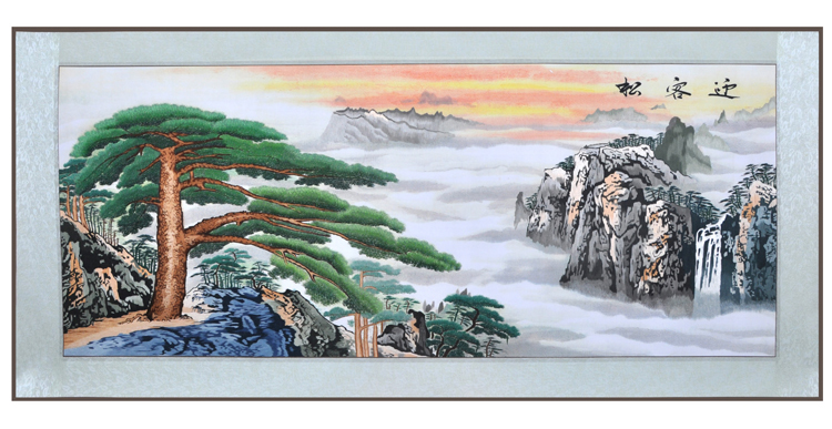 嬌古蘇繡民族特色禮品 迎客松 送外賓禮物蘇繡軟裱 方便攜帶出國