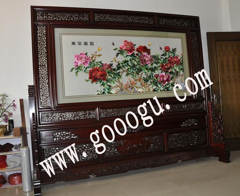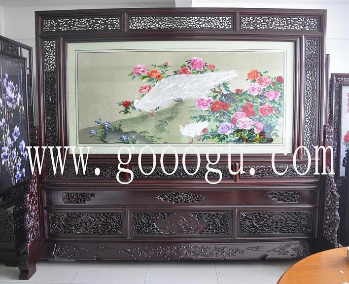 大廳裝飾刺繡擺件&紅木家具擺件&古典屏風(fēng)隔斷&孔雀牡丹蘇繡屏風(fēng)