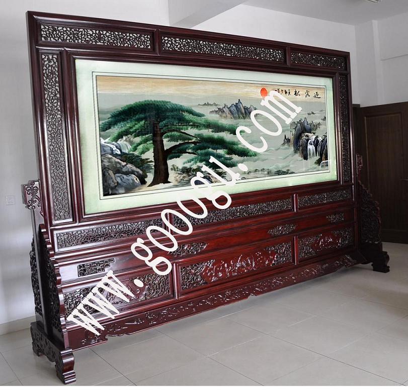 大型迎客松紅木屏風(fēng)&高檔刺繡雙面繡地屏&單位大廳裝飾畫屏風(fēng)