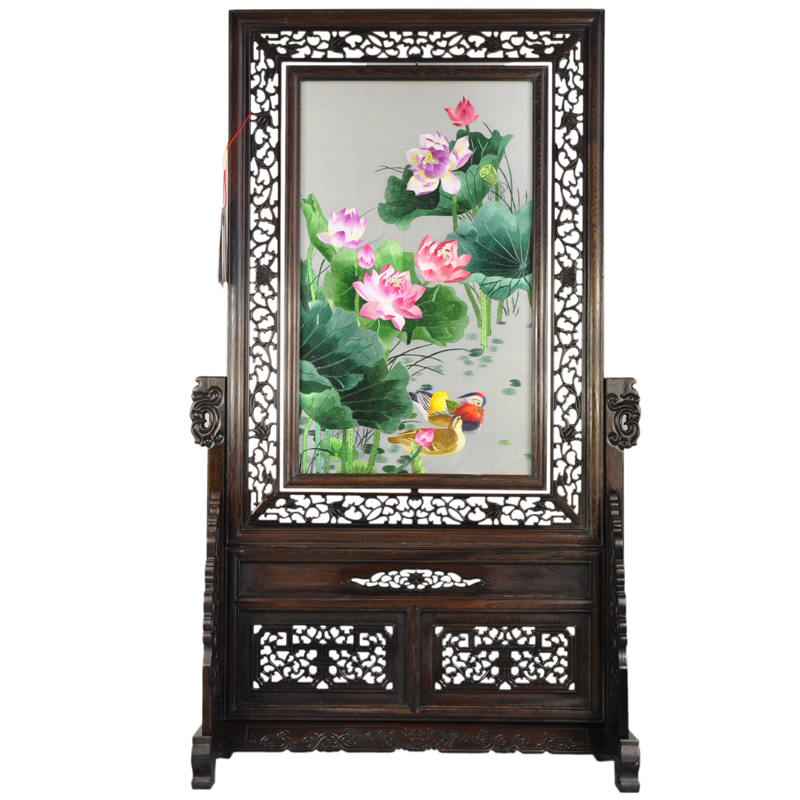 蘇繡牡丹雞翅木豎架客廳擺件創(chuàng)意特色工藝品送外賓禮物民間工藝手工藝品