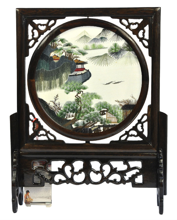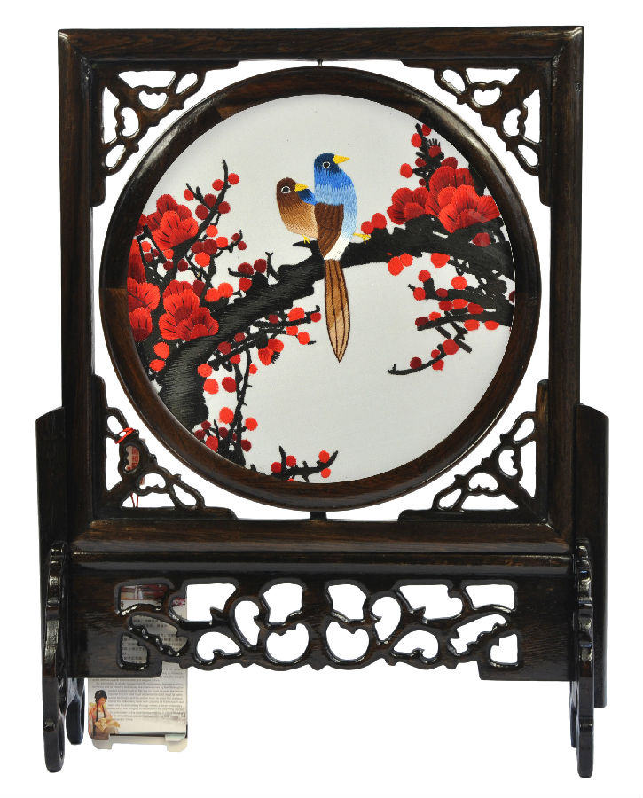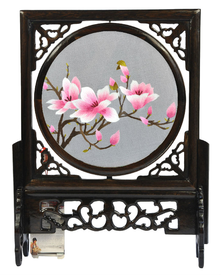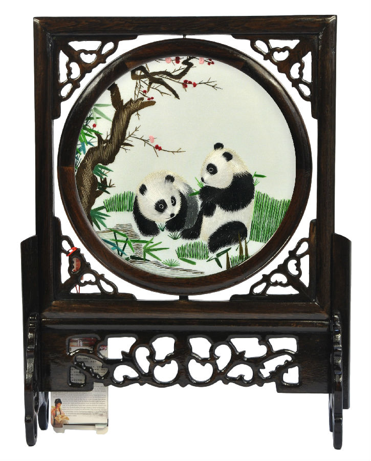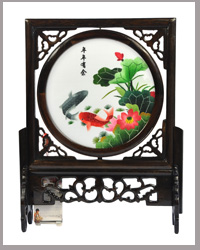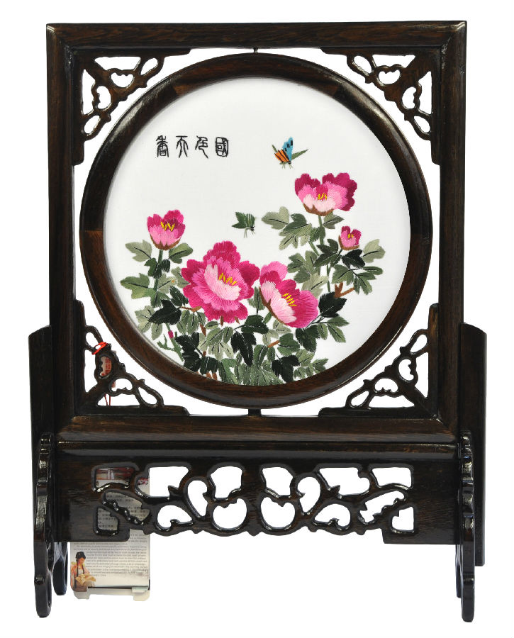 產(chǎn)品名稱:20CM內(nèi)圓外方蘇繡臺屏(雙面繡) (作品代碼:SN-406) 產(chǎn)品規(guī)格:圖案尺寸圓直徑20CM 外框整體尺寸寬32CM,高40CM 產(chǎn)品工藝:蘇州繡娘手工刺繡。繡品可360度旋轉(zhuǎn) 產(chǎn)品材質(zhì):真絲面料+桑蠶絲線+玻璃+木架 產(chǎn)品包裝:錦盒禮品裝 嬌古出廠價:420元/件 最小起訂量:20件----廠家直銷,可當(dāng)天發(fā)貨(可混配圖案) 產(chǎn)品描述:20CM內(nèi)圓外方款蘇州雙面繡為蘇州繡娘純手工刺繡而成,圖案有花卉(牡丹,梅花,荷花,蘭花等),花鳥,動物(熊貓,老虎,魚等),山水,風(fēng)景等。圖案多達一百多種,有古色古香的,有現(xiàn)代氣息的,高貴典雅,是贈送客人的重要禮品之一。 注:此款因其性價高被眾多企事業(yè)單位及禮品公司大量采購,可用于商務(wù)禮品,會議禮品,企事業(yè)紀念禮品等(可根據(jù)需要加企業(yè)LOGO等)。 此款曾為日本索尼,美國新美亞等知名企業(yè)定做商