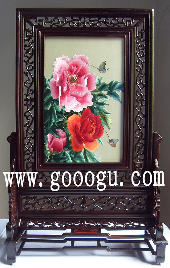 牡丹刺繡臺屏風精品