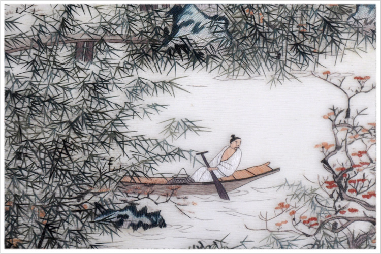 【品 牌】:嬌古 (作品代碼 D-1028) 【品 名】:南岸山水裝飾畫(huà)(手工蘇繡) 【品 質(zhì)】:1-2絲刺繡 (蘇繡小知識(shí):1根蘇繡絲線可分為16絲,中檔刺繡皆為10絲所繡,中高檔刺繡皆為6-8絲,高檔刺繡皆為4-6絲,精品刺繡皆為1-4絲) 【尺 寸】:畫(huà)心尺寸50*100cm 整體尺寸75*130cm 【產(chǎn)品工藝】:手工刺繡 【絲線材質(zhì)】:蠶絲線 。 【用 途】:居家裝飾或送政府禮品、外賓禮品、生日禮物、賀壽禮品、領(lǐng)導(dǎo)升遷、出國(guó)禮品等等。 【出廠價(jià)格】:15000元 【細(xì)節(jié)圖】