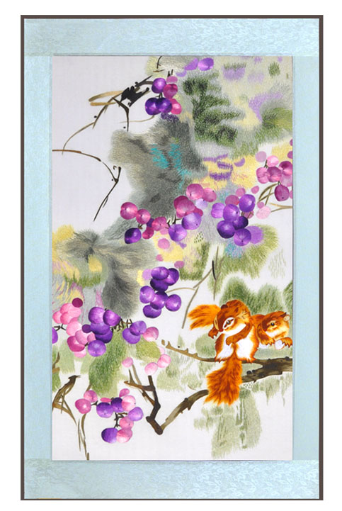 【用 途】:生日禮物、賀壽禮品、領(lǐng)導(dǎo)升遷、商務(wù)禮品等等。 【出廠價(jià)】:1280元 【作品介紹】:葡萄,自古就是文人畫家們吟詠歌頌的對(duì)象,在果品中,葡萄的資歷最老,據(jù)古生物學(xué)家考證,在新生代第三地層內(nèi)就發(fā)現(xiàn)了葡萄葉和種子的化石,證明距今六百五十多萬年前就已經(jīng)有了葡萄。有的學(xué)者認(rèn)為在23000萬年前至6700萬年前就有類似葡萄的植物。葡萄畫有多子多孫之意,是家居字畫裝飾中常見的吉利風(fēng)水字畫,宜放在客廳主沙發(fā)后面的墻上,既雅致清新,又別具裝飾性。同時(shí)也是賓館/旅館 ,酒店/飯店裝飾字畫不錯(cuò)的選擇。 細(xì)節(jié)一