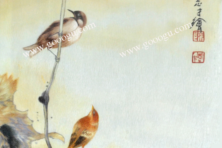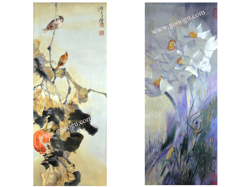 【產(chǎn)品名稱】:花鳥折疊屏風(fēng)---陳志才花鳥(雙面繡) (作品代碼:ZP-1002) 【產(chǎn)品規(guī)格】:圖案尺寸寬40CM每扇,高100CM每扇 外框整體尺寸寬65cm每扇,高205cm每扇 【產(chǎn)品工藝】:手工刺繡 【產(chǎn)品材質(zhì)】:真絲面料+純天然雞翅木框+桑蠶絲線+玻璃 【產(chǎn)品包裝】:木箱包裝,用海綿包扎,確保運(yùn)輸安全 【出廠價(jià)】:54800元 【產(chǎn)品運(yùn)輸】:我司負(fù)責(zé)發(fā)往客戶指定地點(diǎn),蘇州附近城市可送貨上門! 【產(chǎn)品說明】:此款純天然雙面繡折疊屏風(fēng),采用進(jìn)口的雞翅木為框架材料,做工精細(xì),整幅作品是由蘇州工藝師耗時(shí)數(shù)月手工刺繡而成,刺繡圖案繡工精細(xì),顏色搭配均勻,整體給人舒適,愜意之感,木雕細(xì)膩精美,是蘇繡屏風(fēng)中的經(jīng)典作品。是貴賓接待室或大廳的重要裝飾品之一!歡迎親臨嬌古蘇繡展示廳觀看實(shí)物! 【作品欣賞】 .jpg) 陳志才花鳥特寫 .jpg)