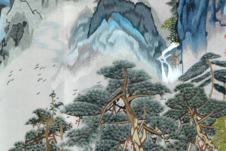 【產(chǎn)品名稱(chēng)】:屏風(fēng)江山如此多嬌 (作品代碼:P-1089) 【產(chǎn)品規(guī)格】:圖案尺寸寬度120cm,高度70cm 外框整體尺寸寬180cm,高180cm 【產(chǎn)品工藝】:手工刺繡 【產(chǎn)品材質(zhì)】:真絲面料+雞翅木框+桑蠶絲線(xiàn)+玻璃 【產(chǎn)品包裝】:木箱包裝,用海綿包扎,確保運(yùn)輸安全 【出廠(chǎng)價(jià)】:22000元 【產(chǎn)品運(yùn)輸】:我司負(fù)責(zé)發(fā)往客戶(hù)指定地點(diǎn),蘇州附近城市可送貨上門(mén)! 【產(chǎn)品說(shuō)明】:此款雙面繡屏風(fēng),是由蘇州工藝師耗時(shí)數(shù)個(gè)月精心手工刺繡而成,刺繡圖案以國(guó)畫(huà)江山如此多嬌為題材繡工精細(xì),顏色搭配均勻過(guò)渡自然,整體給人舒適,愜意之感,屏風(fēng)的框架選用雞翅木為料,蘇繡屏風(fēng)是家用玄關(guān)或辦公玄關(guān)的重要裝飾物之一!歡迎親臨嬌古蘇繡展示廳觀看實(shí)物! 【作品欣賞】 .jpg)
