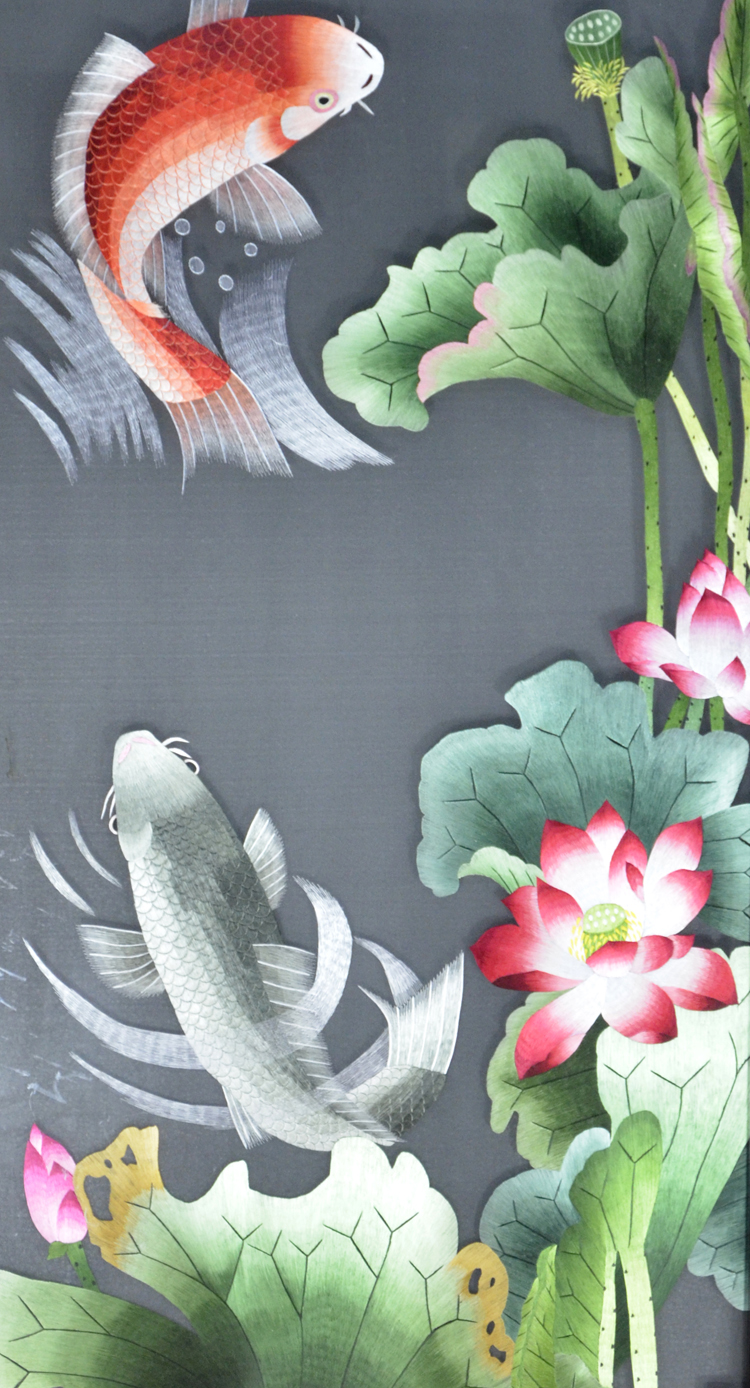 【產(chǎn)品名稱】:荷花魚屏風(fēng)(雙面繡) (作品代碼:P-1203) 【產(chǎn)品規(guī)格】:圖案尺寸寬度60cm,高度125cm 外框整體尺寸寬100cm,高205cm 【產(chǎn)品工藝】:手工刺繡 【產(chǎn)品材質(zhì)】:真絲面料+雞翅木框+桑蠶絲線+玻璃 【產(chǎn)品包裝】:木箱包裝,用海綿包扎,確保運(yùn)輸安全 【出廠價(jià)】:18000元 【市場(chǎng)零售參考價(jià)】:36000-48000元 【產(chǎn)品運(yùn)輸】:我司負(fù)責(zé)發(fā)往客戶指定地點(diǎn),蘇州附近城市可送貨上門! 【產(chǎn)品說明】:此款荷花魚雙面繡屏風(fēng),是由蘇州工藝師耗時(shí)數(shù)個(gè)月精心手工刺繡而成,刺繡圖案以傳統(tǒng)的荷花魚為題材繡工精細(xì)、寓意深刻,顏色搭配均勻過渡自然,屏風(fēng)的框架選用進(jìn)口的雞翅木為料,是蘇繡屏風(fēng)中的珍稀作品。是居家裝飾的重要裝飾品之一!歡迎親臨嬌古蘇繡展示廳觀看實(shí)物! 【作品欣賞】 .jpg)