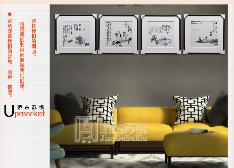 【品 牌】:嬌古 (作品代碼 D-1068) 【品 名】:中國元素裝飾畫(手工蘇繡) 【品 質(zhì)】:4-6絲刺繡 (蘇繡小知識:1根蘇繡絲線可分為16絲,中檔刺繡皆為10絲所繡,中高檔刺繡皆為6-8絲,高檔刺繡皆為4-6絲,精品刺繡皆為1-4絲) 【尺 寸】:畫心尺寸50*50cm 整體尺寸75*75cm 【產(chǎn)品工藝】:手工刺繡+真絲底料 【絲線材質(zhì)】:蠶絲線 【用 途】:政府禮品、個人收藏、外賓禮品、生日禮物、賀壽禮品、領(lǐng)導(dǎo)升遷、出國禮品等等。 【出廠價格】:3000元/幅